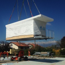 Construction d'une villa mitoyenne en éléments préfabriqués au coeur du village de Laconnex (GE).