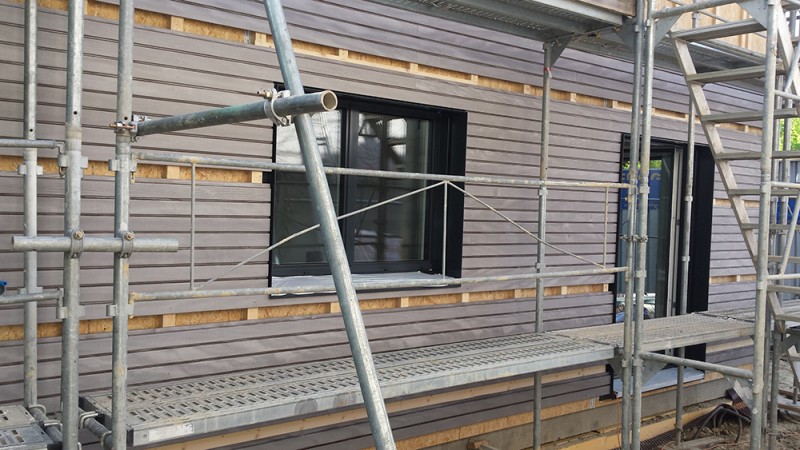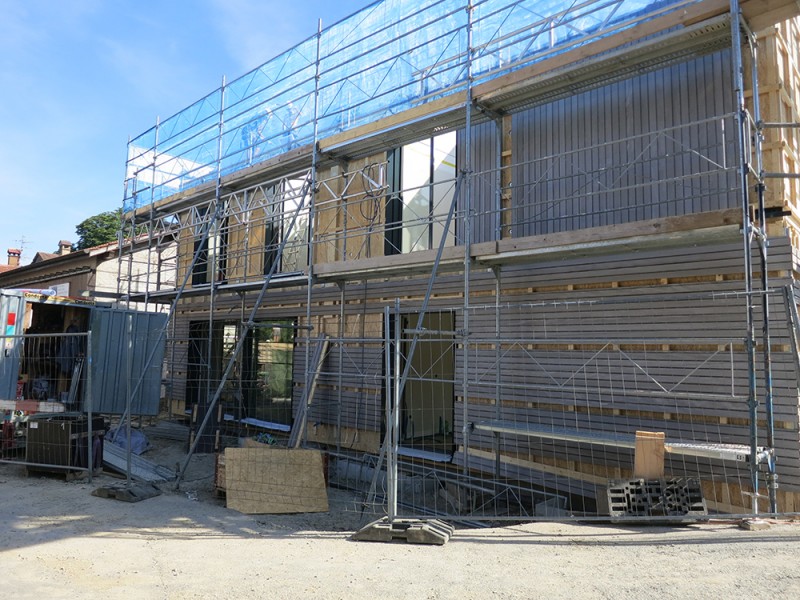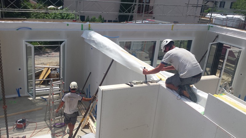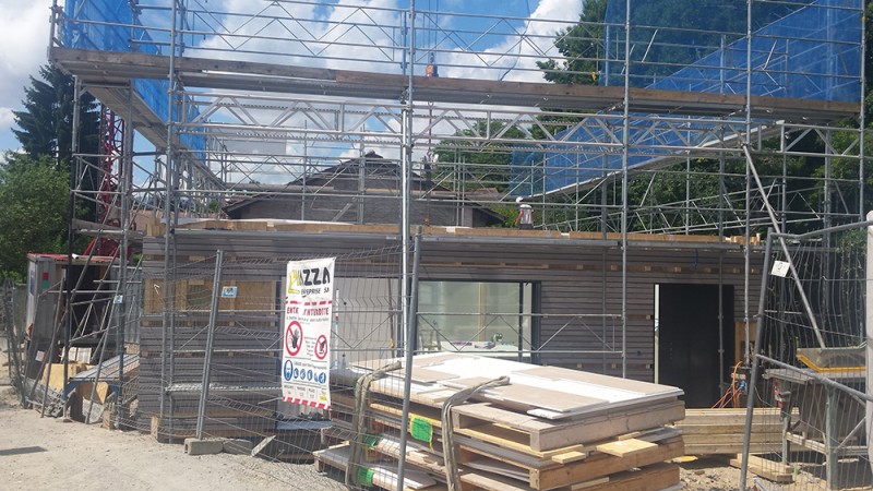 Construction d'une villa mitoyenne en éléments préfabriqués au coeur du village de Laconnex (GE).