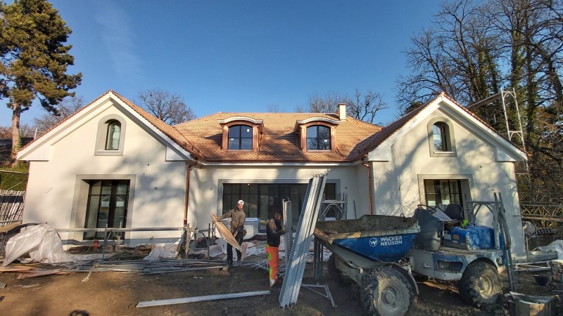 Travaux en cours d'une rénovation complète et mises aux normes énergétique d'une deumeure dans la campagne Genevoise.